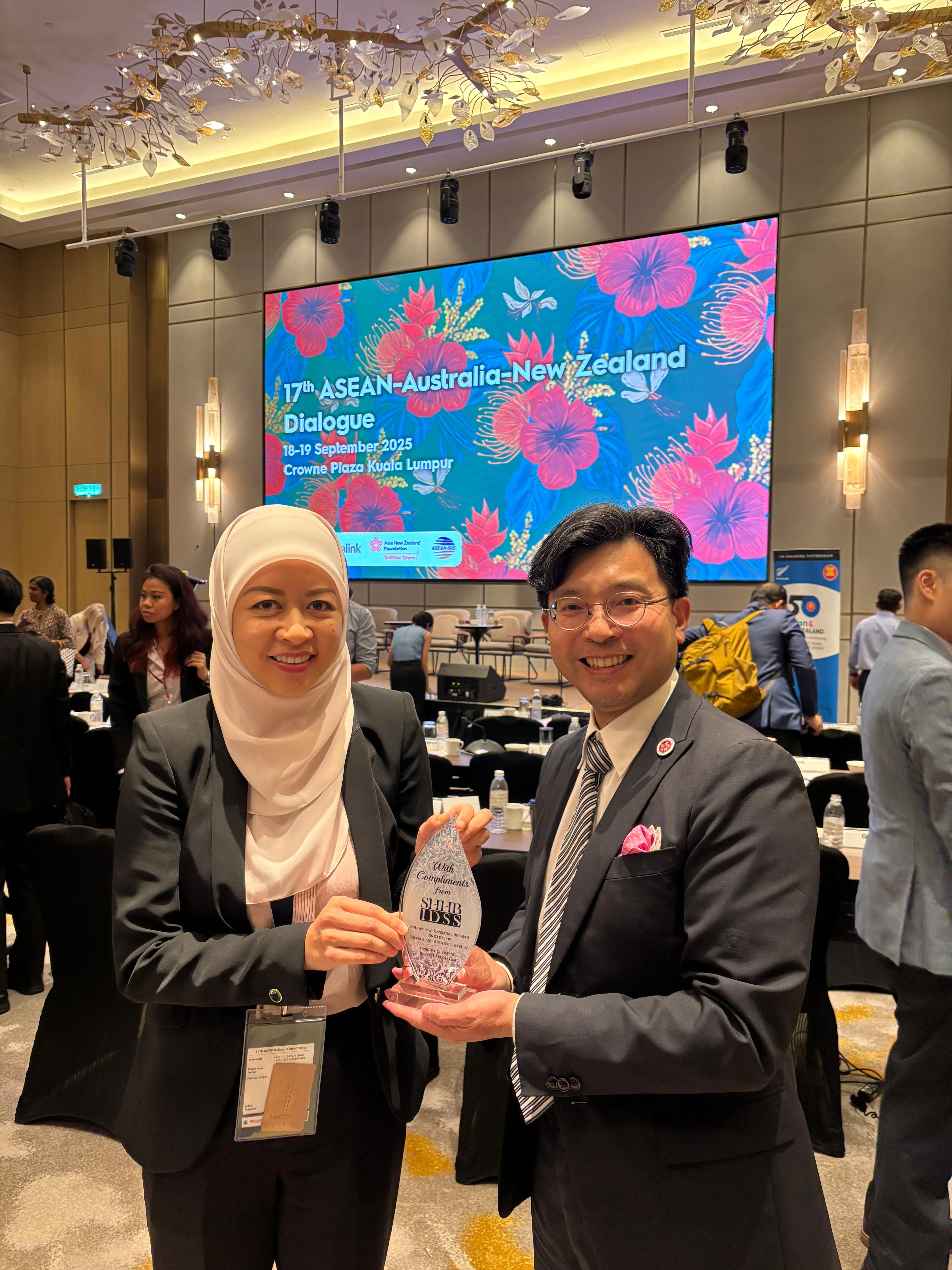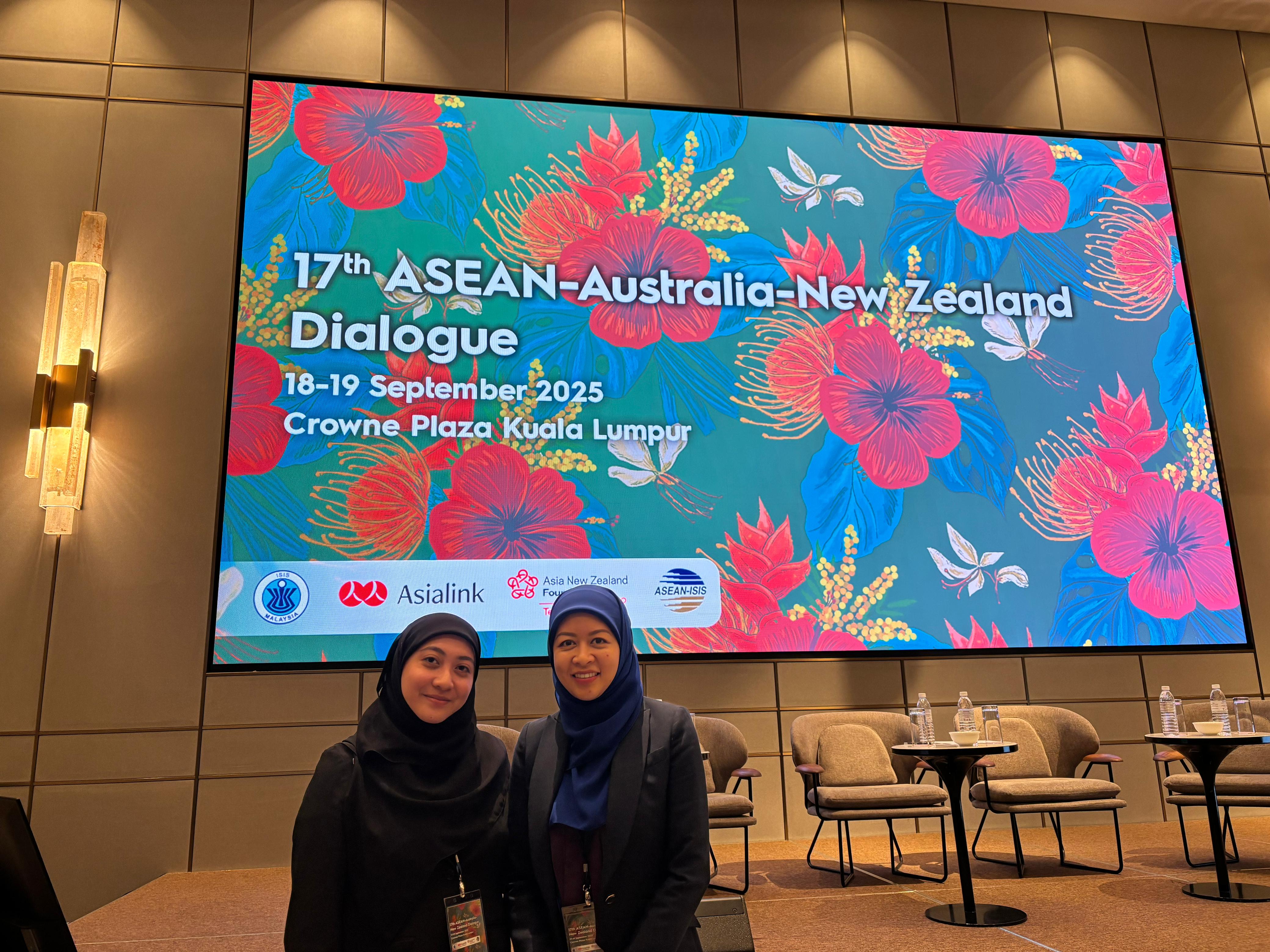 Wednesday, 17 September 2025 – The Sultan Haji Hassanal Bolkiah Institute of Defence and Strategic Studies (SHHBIDSS) attended the 17th ASEAN-Australia-New Zealand (AANZ) Dialogue, co-organised by the Institute of Strategic & International Studies (ISIS) Malaysia, Asia Link Australia and Asia New Zealand Foundation from 17 to 19 September 2025 in Kuala Lumpur, Malaysia. Representing the Institute were Dr Sabrina Daud, Assistant Director, and Ms Muizzah Harun, Research Officer.